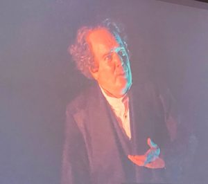 The lighting, sound and direction get assists for how well this worked. Director (and co-author of this adaptation) Michael Arden’s vision is masterful in its use especially of the lighting. In scenes where Mays isn’t reciting but is having conversations essentially with himself you fully believe he is the multiple characters he’s portraying. This works fantastically well in the scene with Scrooge and Marley and somewhat less well but appealingly awkward in the Cratchit family Christmas dinner scene.
